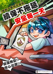 強制汽車責任保險宣導海報-續保不拖延,安全每一天!